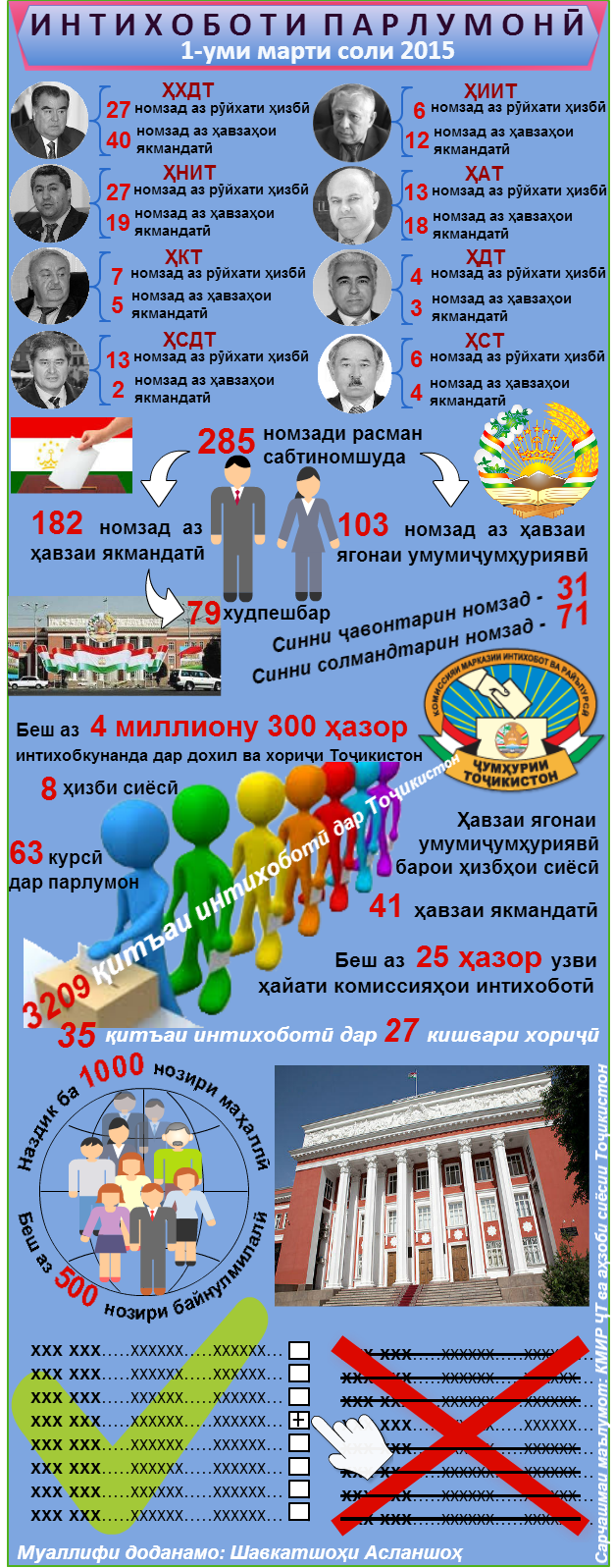 Интихоби озодона ва огоҳонаи мақомоти қонунгузор яке аз рукнҳои аслии мардумсолорист. Рӯзи 1-уми март шаҳрвандони Тоҷикистон дар дохил ва хориҷи кишвар барои интихоби 63 вакили Маҷлиси намояндагони Маҷлиси Олии ҶТ пойи сандуқҳои раъй мераванд.