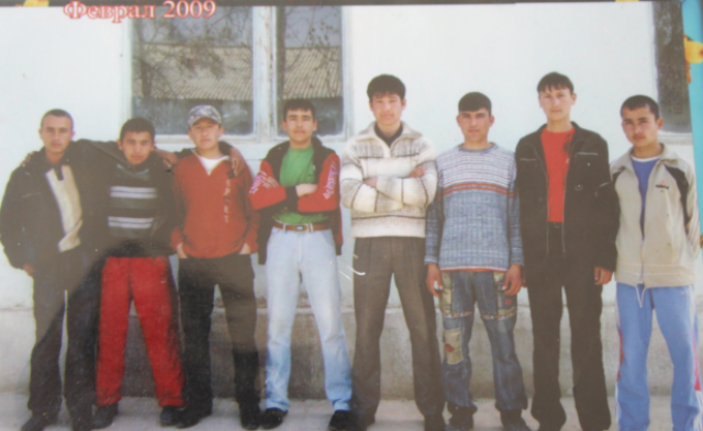Суннатулло Абдуллоев (дар марказ) бо ҳамсинфонаш, феврали соли 2009