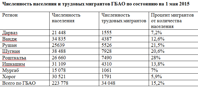 Тибқи маълумоти Раёсати рушди иқтисод ва савдои ВМКБ, тӯли 4 моҳи соли 2015 ҳаҷми интиқоли маблағҳои пули муҳоҷирони корӣ аз Русия беш аз 8 млн. 150 ҳазор доллари ИМА-ро ташкил додаст, ки дар муқоиса бо ҳамин давраи соли гузашта 6 млн. 257 ҳазор доллари ИМА камтар аст. Дар маҷмӯъ соли 2014 муҳоҷирон ба Помир 49 млн. 675 ҳазор доллари ИМА фиристодаанд, ки нисбат ба соли 2013 ба миқдори 8 млн. 791 ҳазор доллари ИМА камтар мебошад.