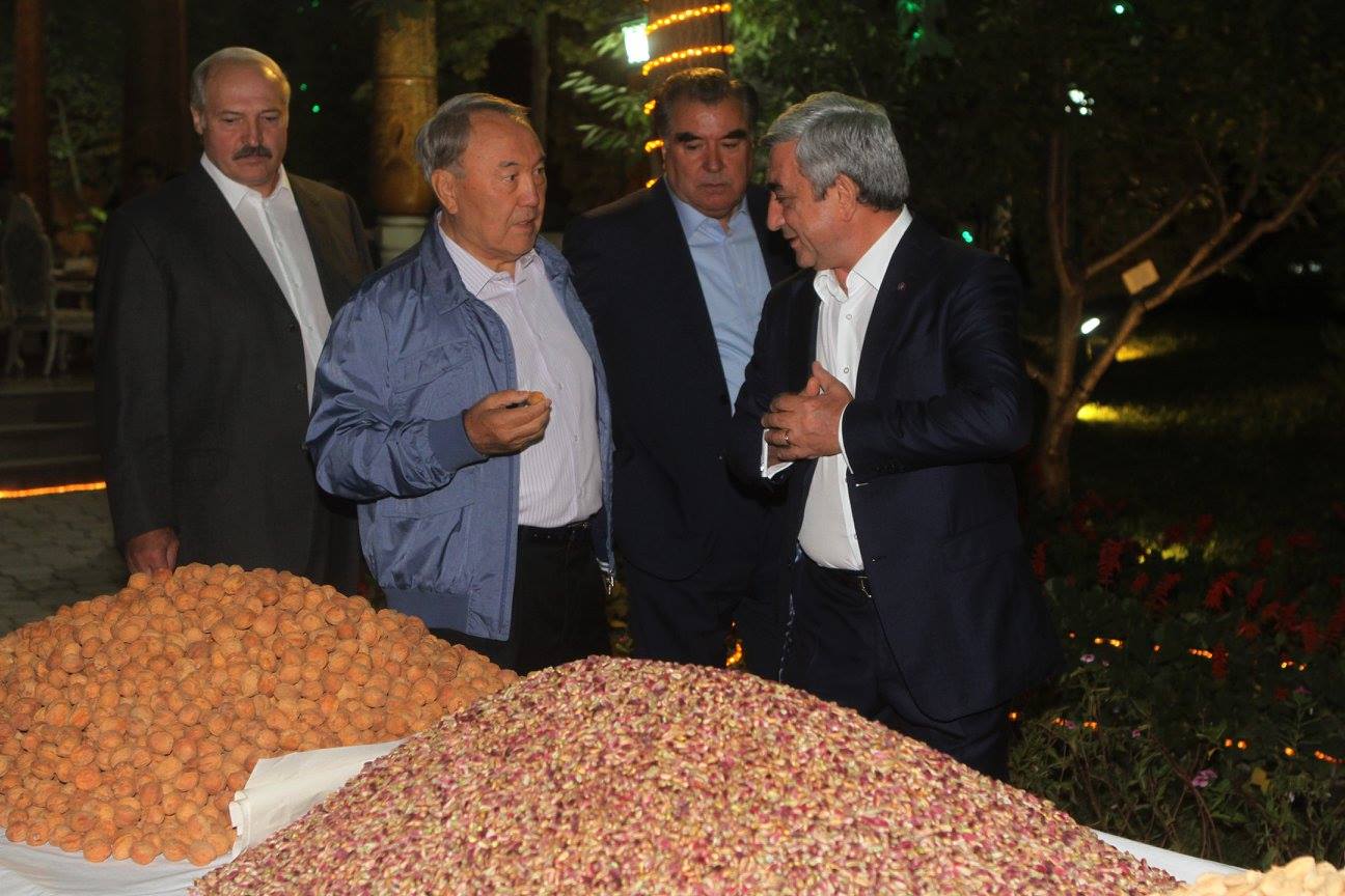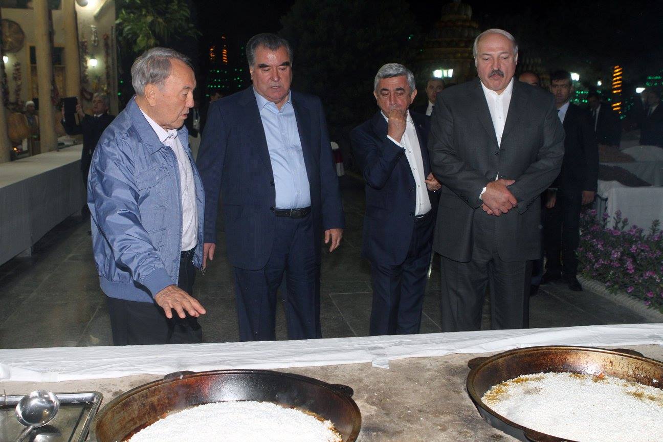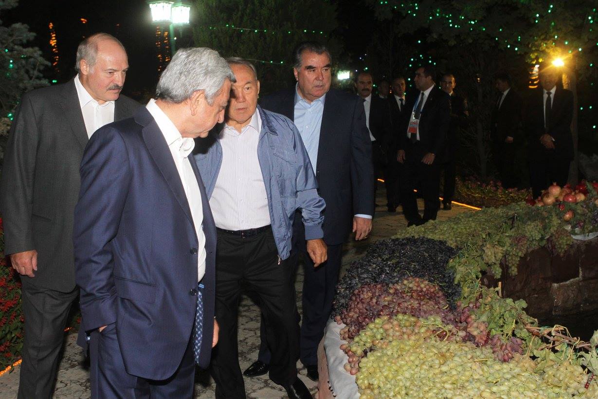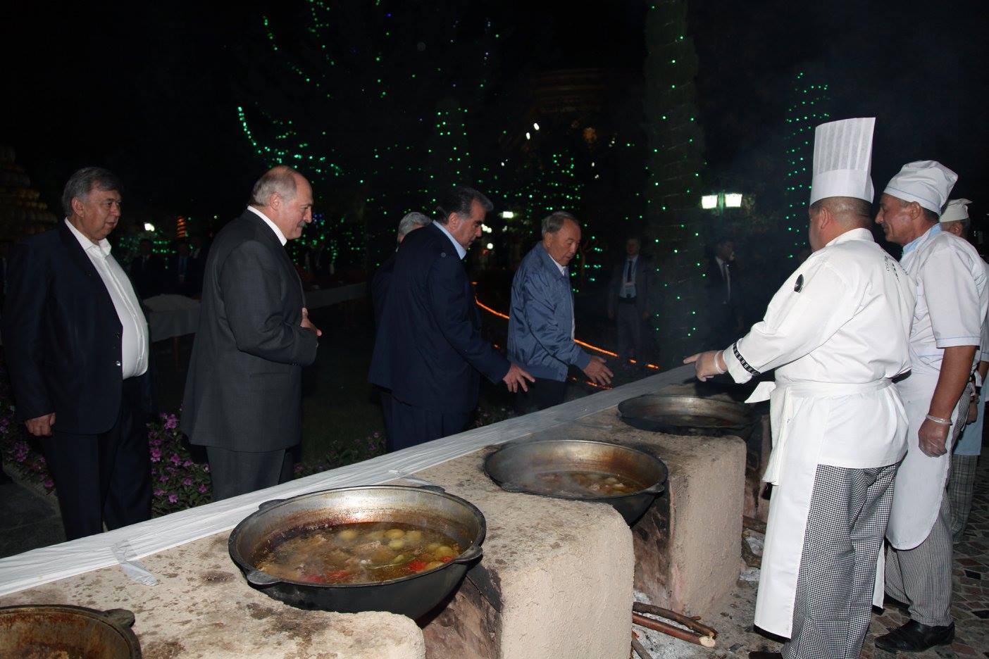 Шоми рӯзи Душанбе президенти Тоҷикистон Эмомалӣ Раҳмон барои сарони кишварҳои узви Созмони Аҳдномаи амнияти дастаҷамъӣ, ки ба Душанбе ташриф оварданд, зиёфати шомгоҳӣ орост. Зиёфат дар вазъи ғайрирасмӣ дар қароргоҳи ҳукумат Тоҷикистон (бӯстонсарои ҳукумат) баргузор шуд.
