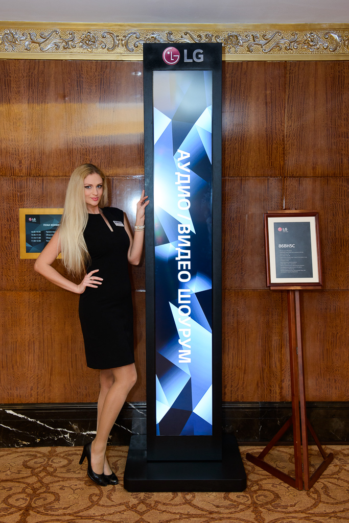Ба ғайр аз ин, дар намоишгоҳи LG    ултра LED-проектори фокускутоҳ барои кинотеатри хонагӣ бо ТВ-тюнери  рақамии насбшуда барои тамошо   пешкаш гардид.