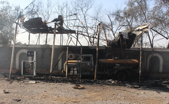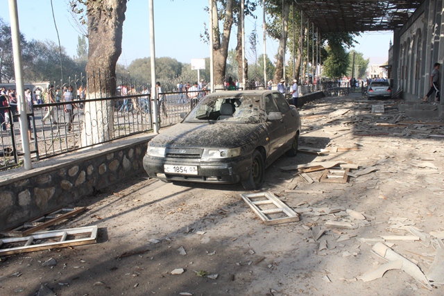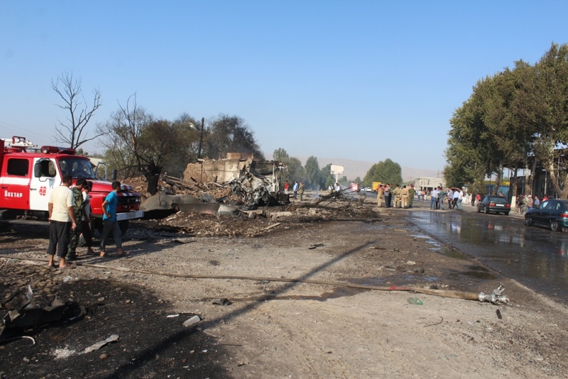 Бар асари таркиш нуқтаи сӯзишворӣ пурра ба коми оташ рафта, ҳамчунин аз мавҷи оташ фурӯшгоҳҳо, ошхона, ва нуқтаҳои фурӯши харбузу тарбуз, ҳамчунин 2 автомашинаи тамғаи Опел ва Мерседес низ осеб дидаанд.
