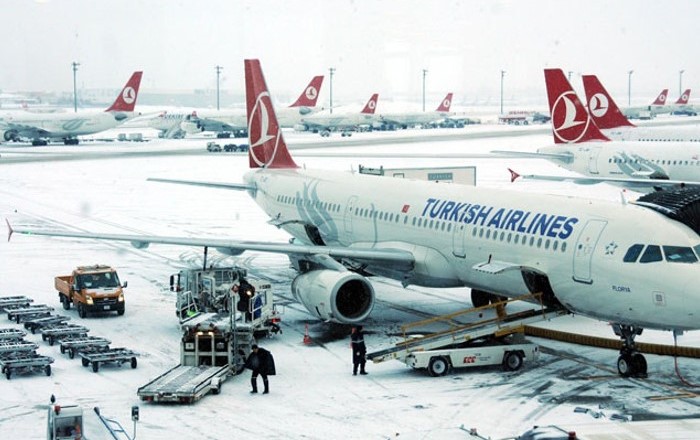 Аз ширкати ҳавопаймоии туркӣ ба «Азия-Плюс» дар ин робита иттилоъ доданд, ки дар натиҷаи барфрезии зиёд фурудгоҳи шаҳри Истанбул ҳавопаймоҳои беш аз 200 хатсайрро қабул карда натавонистааст.