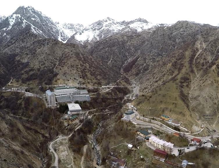 Дар зер аксгардони марҳилаи сохтмони ин муассисаи табобатию фароғатӣ ва тасвири кунунии он аз фазо.