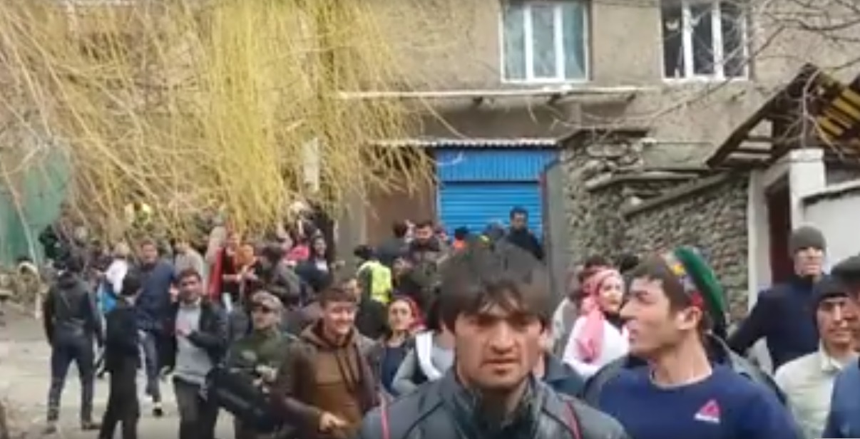 Сокинони шаҳри Хоруғ дар шабакаҳои иҷтимоӣ навори видеоиро гузоштаанд. Дар он дида мешавад, ки даҳҳо нафар аз сангрезӣ дар маҳаллаи Сайфулло Абдулло (Гулакен) худро ба макони амн паноҳ мебаранд.