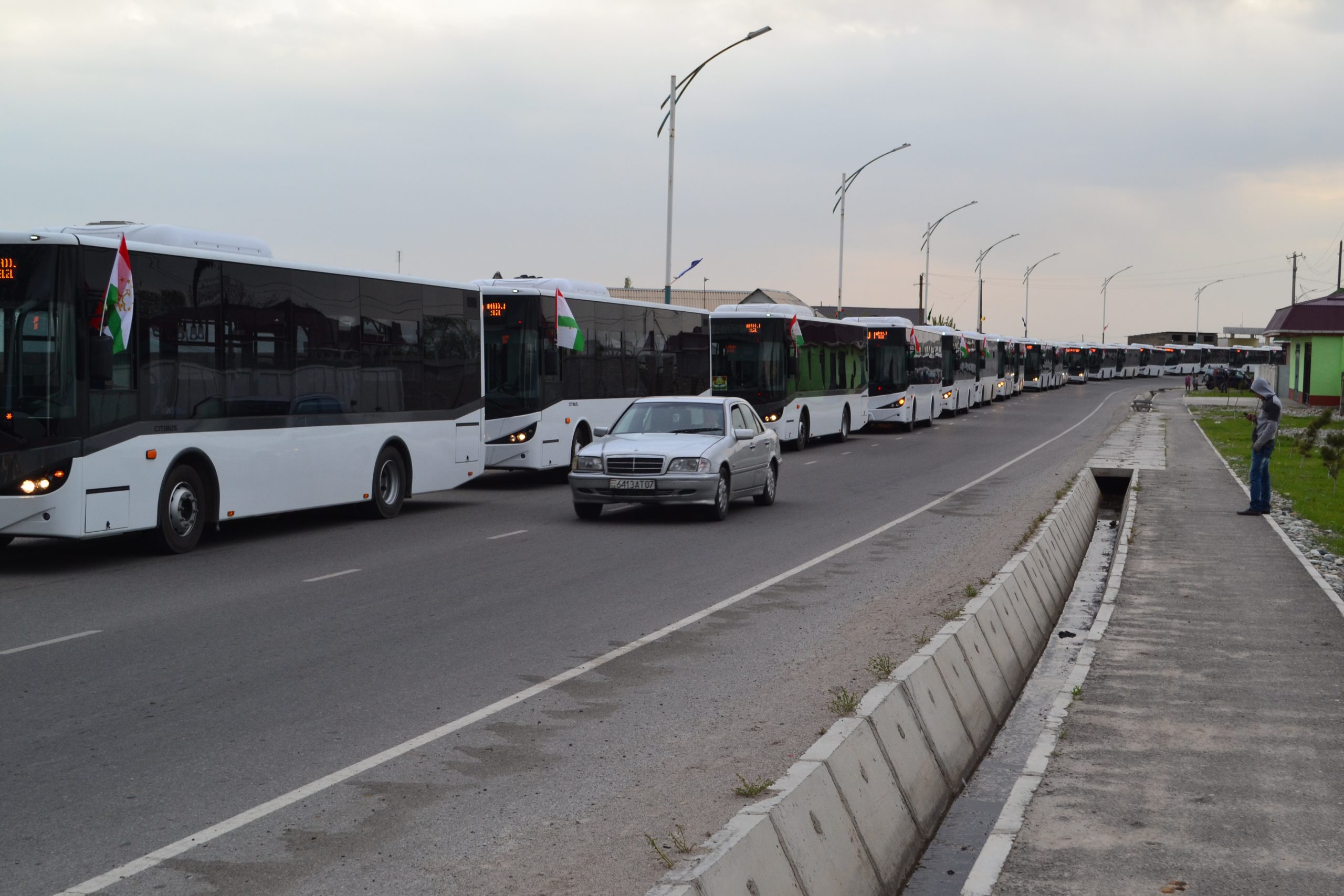 Шумори автобусҳо 40 ададро ташкил дода, дар Туркия харидорӣ шудаанд. Аз Туркия онҳоро тариқи Эрону Турманистон ва Ӯзбекистон муддати 12 рӯз ба Тоҷикистон оварданд.