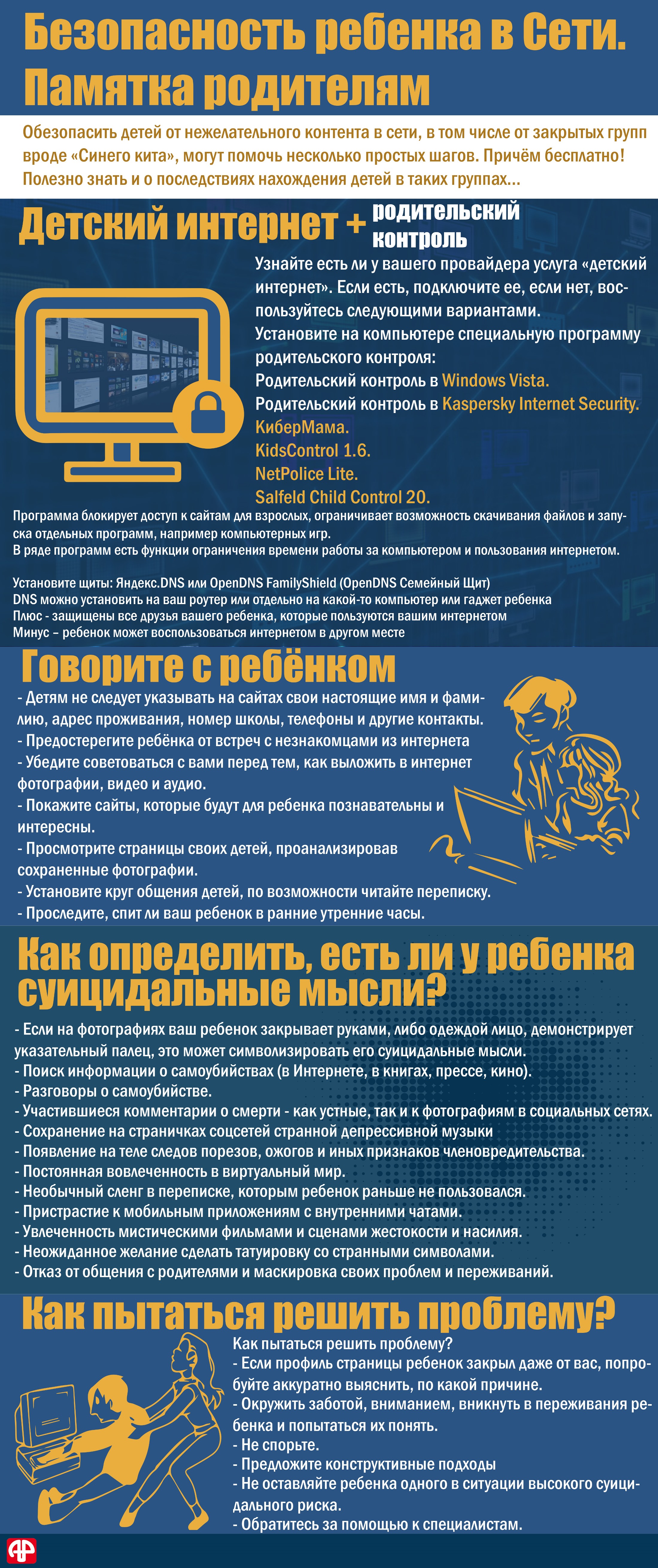 Аз ин рӯ, барои аз хатарҳои эҳтимолӣ эмин нигоҳ доштани фарзандатон дар шабака баъзе тадбирҳо мебояд рӯйи даст гирифт, ки хеле оддиву дастрасанд. Бо чанде аз онҳо дар инфографикаи мо маълумот дарёфт карда метавонед.