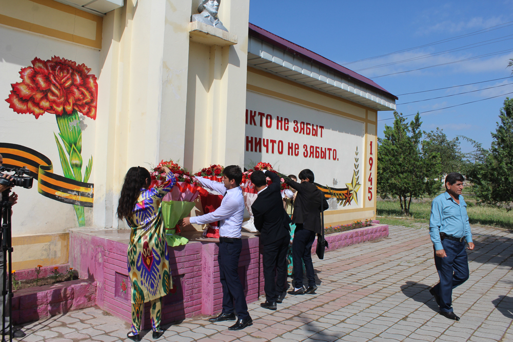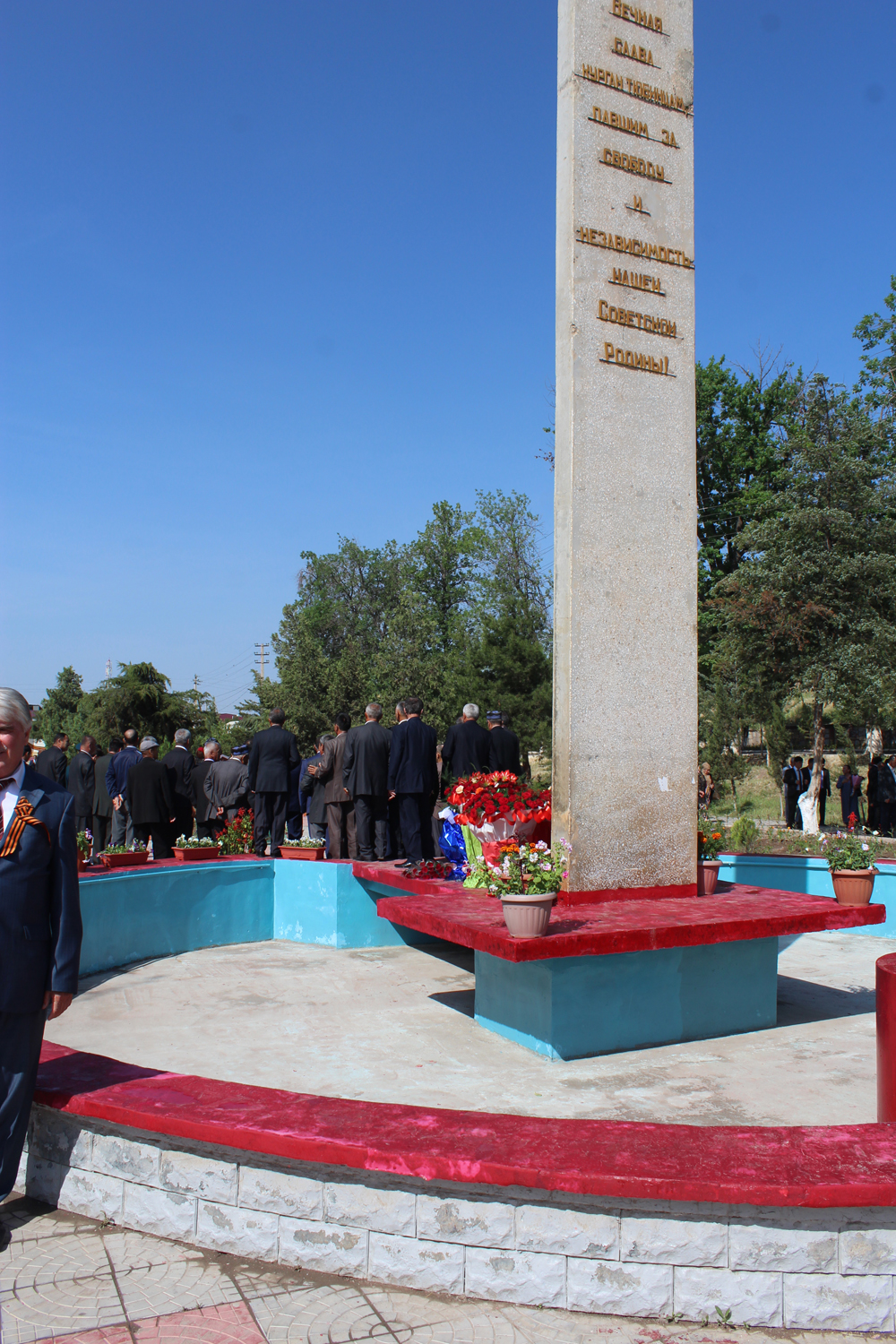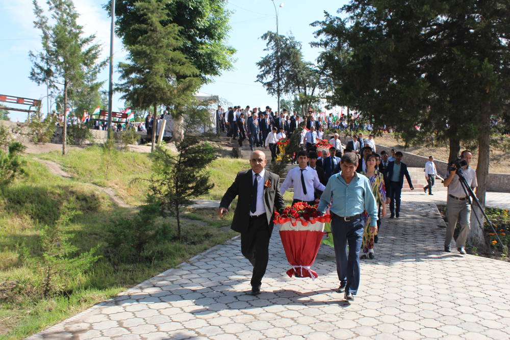 Зимни суханронӣ дар ин чорабинӣ муовини раиси шаҳр Искадар Абдуллозода қаҳрамонии тоҷикистониён дар мубориза зидди фашизмро қайд намуда, изҳор дошт, ки «имрӯз мо ба онҳо, ки ба ивази ҳаёти худ ба мо сулҳу озодӣ аз фашизмро таъмин сохтанд, сари таъзим фуруд меорем ва қаҳрамонии онҳоро ҳеҷ гоҳ фаромӯш намекунем».