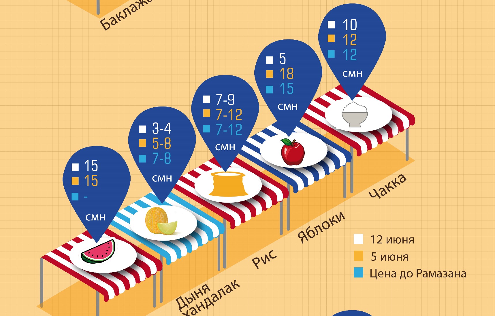 Пеш аз фарорасии моҳи шарифи Рамазон ҳукуматдорони пойтахт ваъда доданд, ки нархҳо ба маҳсулоти мавриди ниёзи аввал боло намераванд. Ба поинравии нархҳо ду омил – баргузор шудани ярмаркаҳои мунтазами маҳсулоти кишоварзӣ дар пойтахт ва афзоиши маҳсулот дар бозорҳо мусоидат карда метавонад. Дарвоқеъ ҳам маҳсулоти кишоварзӣ дар бозорҳо зиёдтар шудааст.