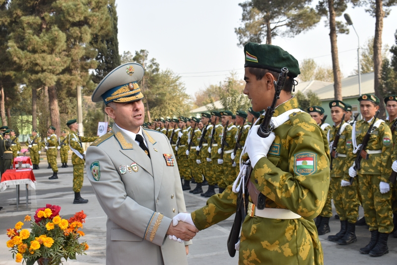 Прапоршикҳои ҷавон ва наваскаронро бо қабули савганд фармондеҳи Қушӯнҳои сарҳадии КДАМ Тоҷикистон генерал-лейтенант Раҷабалӣ Раҳмоналӣ, марзбонони собиқадор ва волидони онҳо табрику таҳният гуфтанд.