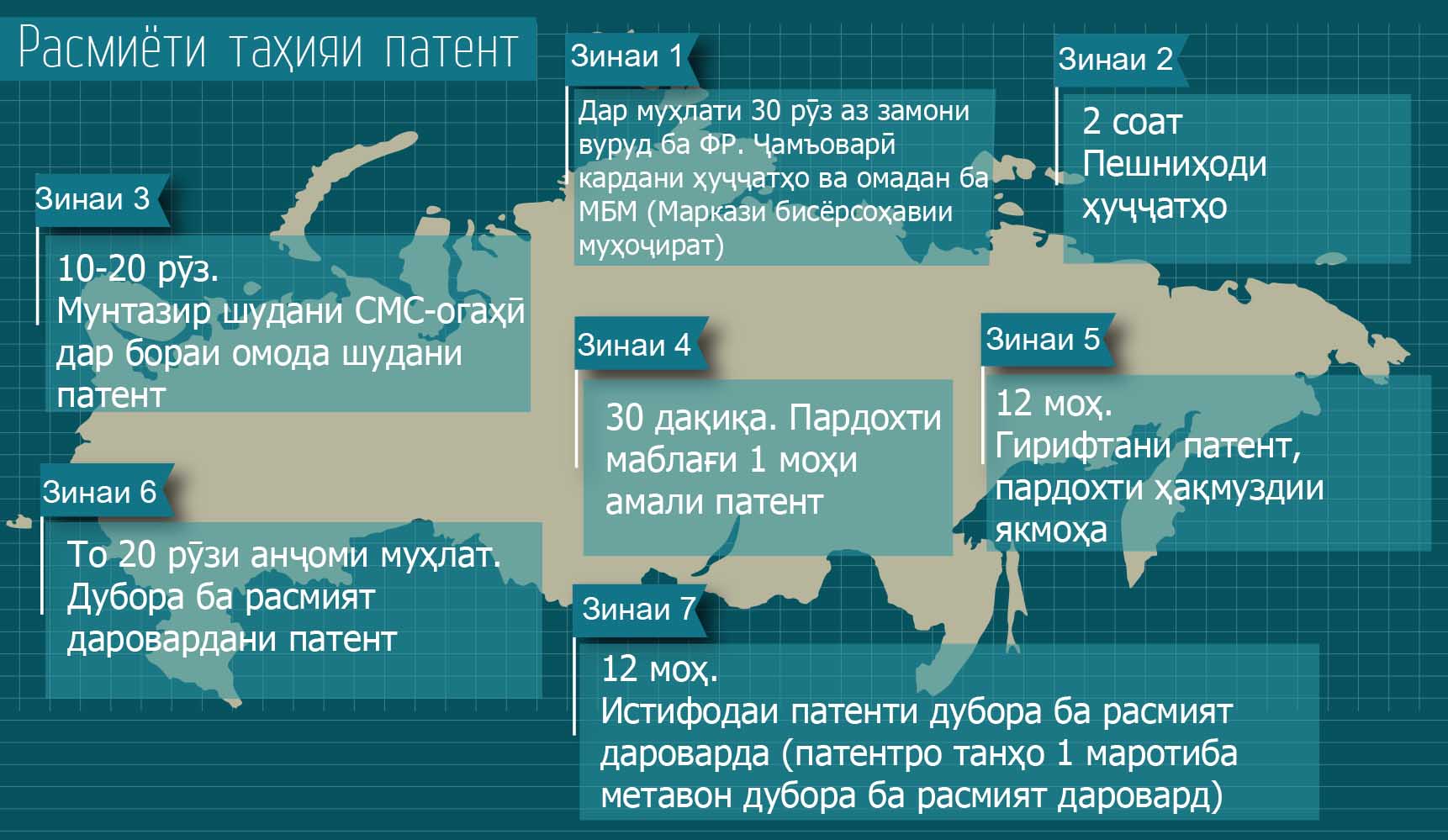 Патент ягона ҳуҷҷатест, ки ҳуқуқи шаҳрванди хориҷиро ба муваққатан амалисозии фаъолияти корӣ дар Русия тасдиқ мекунад, агар раводид надошта бошад. Чӣ гуна дастрас кардани он дар инфографикаи зер нишон дода шудааст.