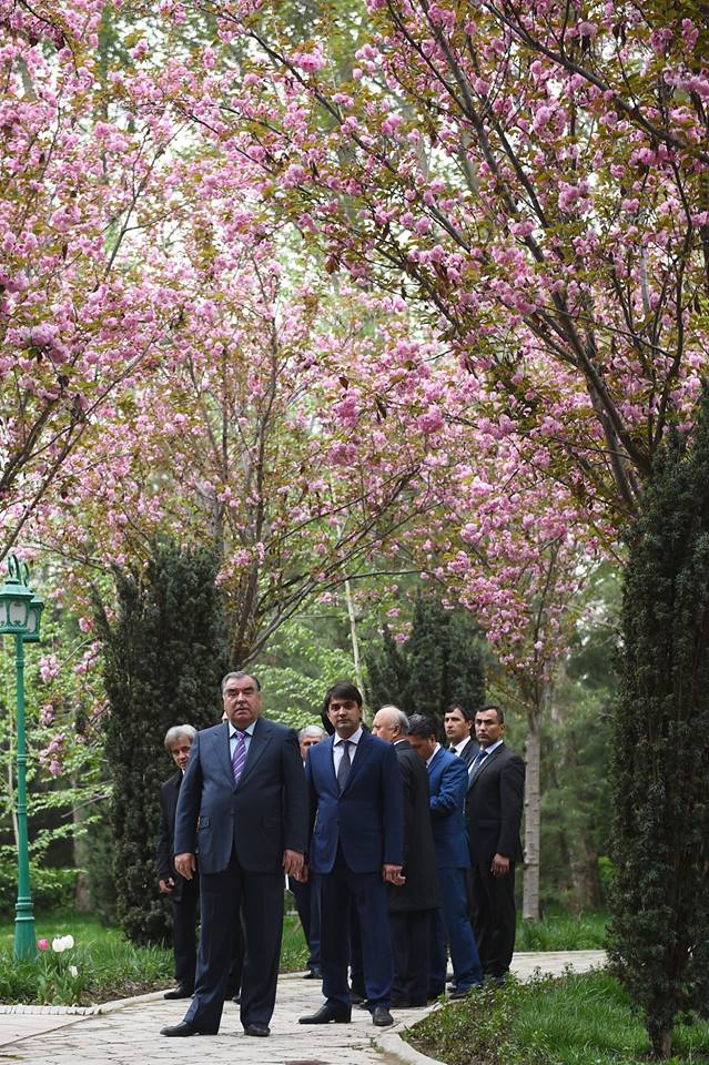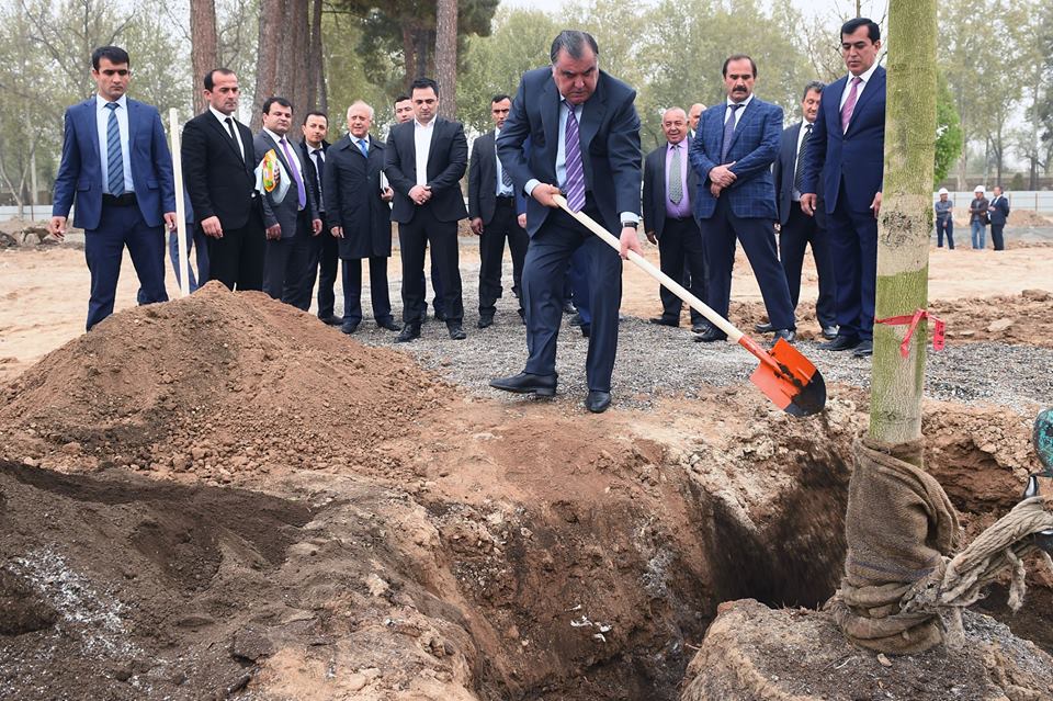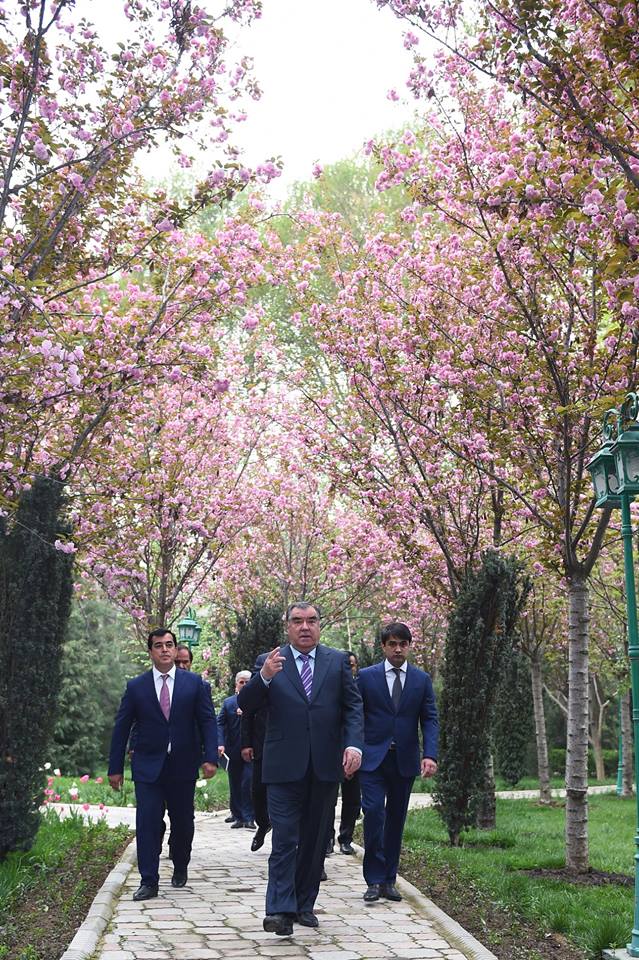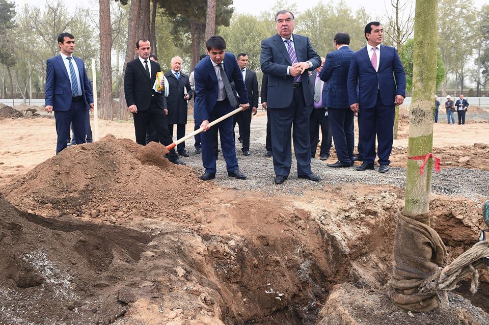 Баъди муаррифии лоиҳаи бунёди гулгашти хиёбони Рӯдакӣ Президенти мамлакат муҳтарам Эмомалӣ Раҳмон бо Раиси шаҳри Душанбе Рустами Эмомалӣ дар ҳамин ҷо дарахти каштан шинониданд.