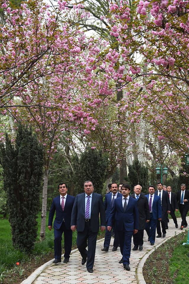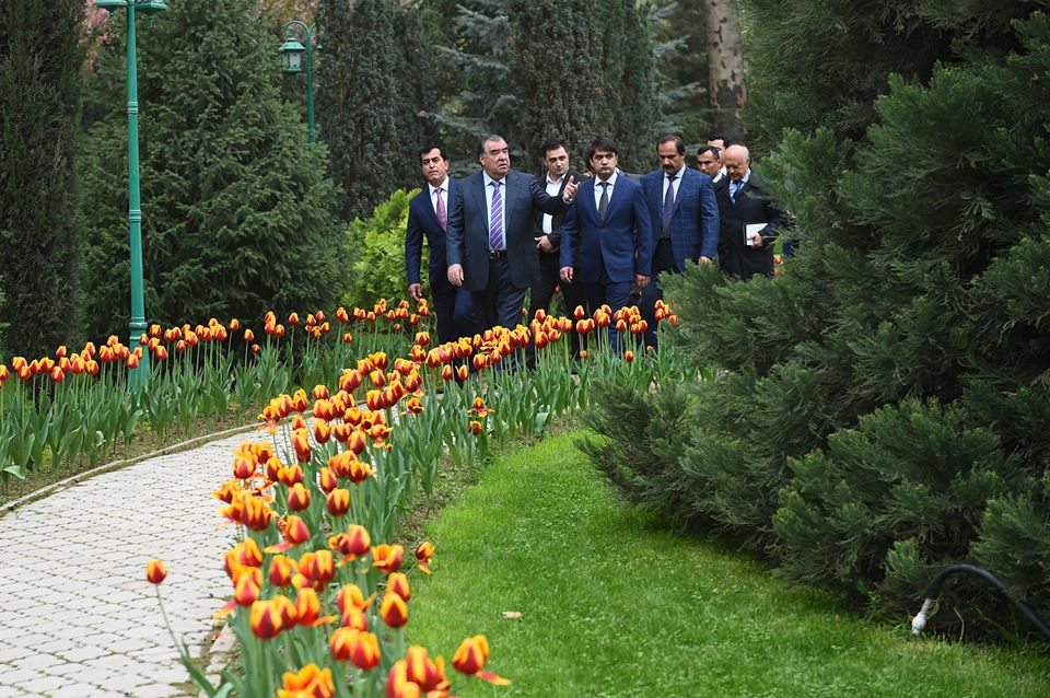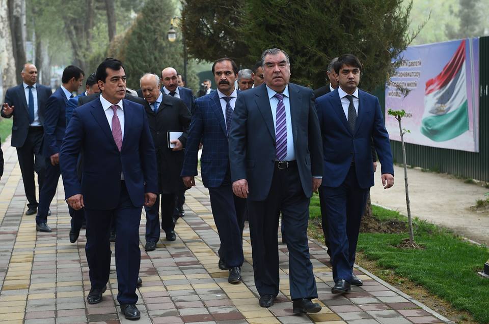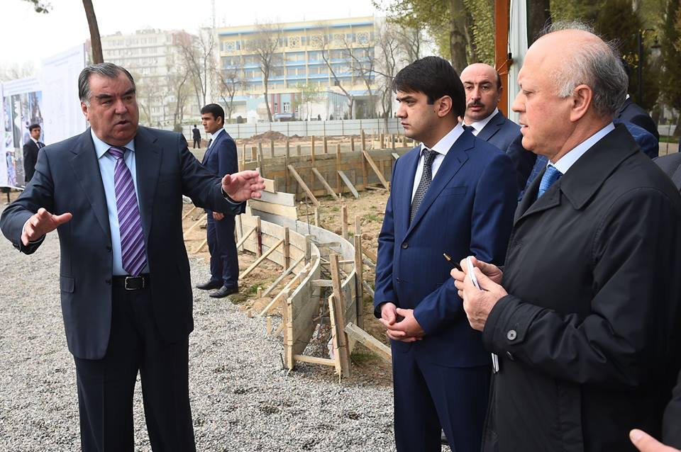 Президенти Тоҷикистон Эмомалӣ Раҳмон бо раиси шаҳри Душанбе Рустами Эмомалӣ дар ноҳияи Исмоили Сомонии пойтахт аз рафти корҳои сохтмонӣ дар гулгашти қисми ғарбии хиёбони Рӯдакӣ шинос шуданд.