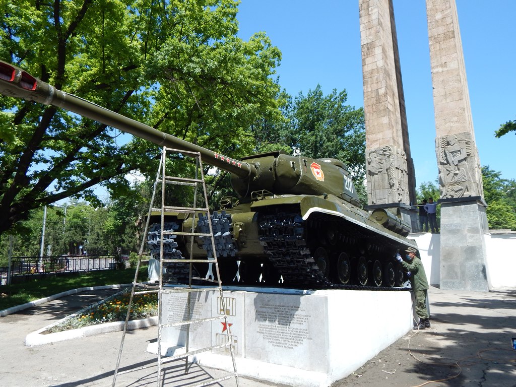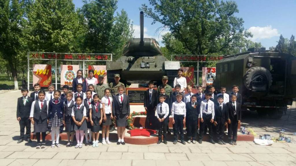 Ба муносибати ҷашни Рӯзи Ғалаба хизматчиёни пойгоҳи низомии 201-уми Русия дар Тоҷикистон ёдгориҳои ҷангро таъмиру барқарор ва ба тартиб оварданд.