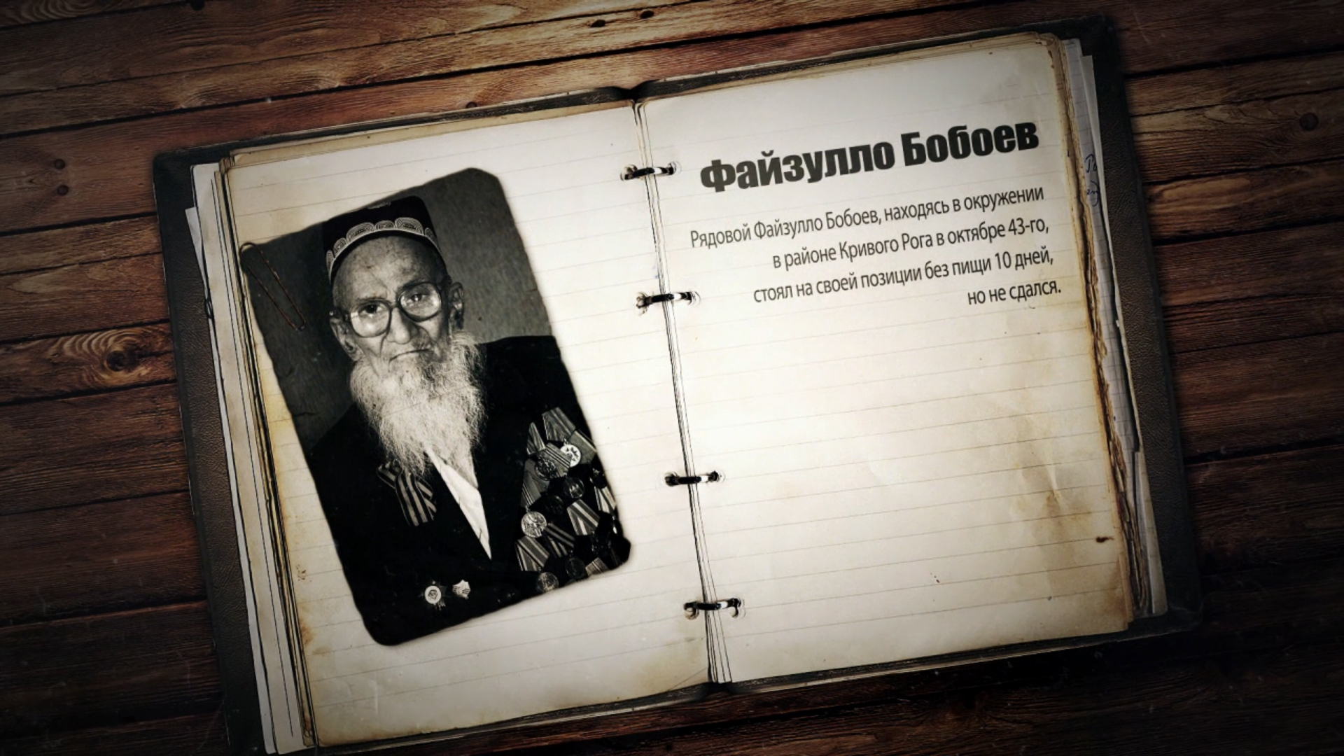 Сарбози қаторӣ Файзулло Бобоев моҳи октябри соли 1943 дар минтақаи Кривой Рог ба иҳотаи душманон афтода, бидуни ғизо 10 рӯз дар мавқеи худ истод, вале таслим нашуд.
