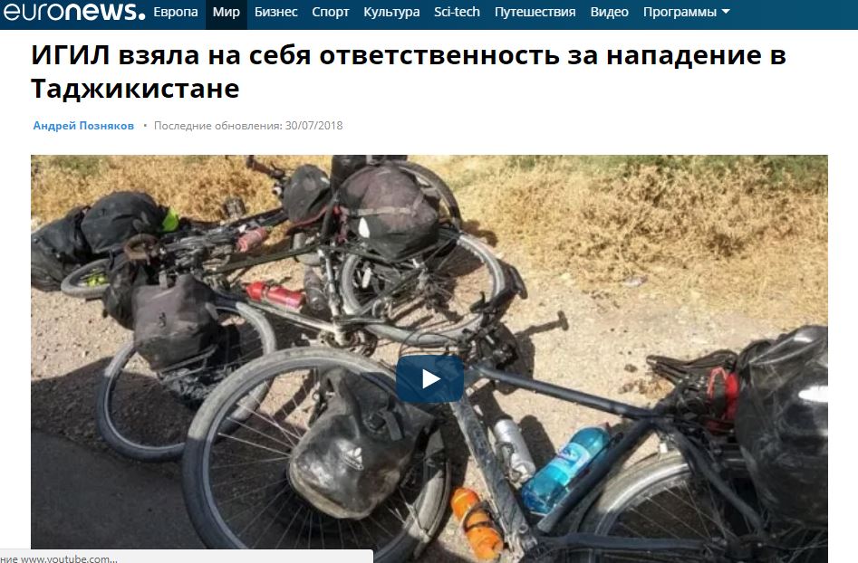 Дар бораи даст доштани Давлати исломӣ ба ин ҳамла Нью-Йорк Таймс низ маълумот дод – “Давлати исломӣ изҳор дошт, ки 4 велосипедронро дар Тоҷикистон нобуд кард”.