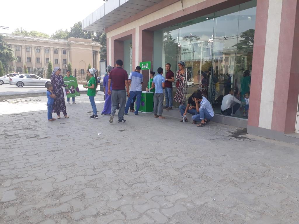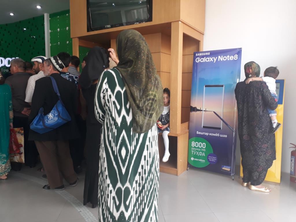 Гурӯҳи дигар барои дубора ба қайд гузоштани симкортҳо ба номи худ ё ба номи каси дигар омадаанд. Дилшод Шокиров мегӯяд, аллакай 1 соат аст навбат мепояд, то ки симкортро аз номи модараш ба номи худ дубора ба қайд гирад.