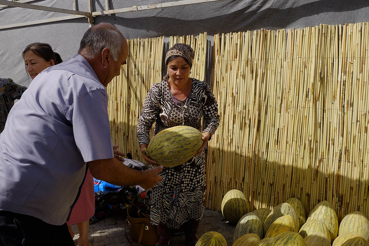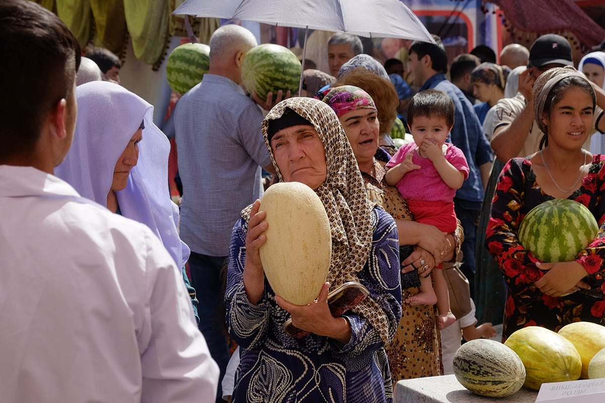 Майдони маҷмааи савдои “Меҳргон” дар ҷашни Иди харбуза серодам буд. Мардум натанҳо барои тамошои навъҳои гуногуни маҳуслоти полизӣ, балки барои харид низ омада буданд, зеро нисбат ба бозорҳо ин ҷо нарх пастттар буд.