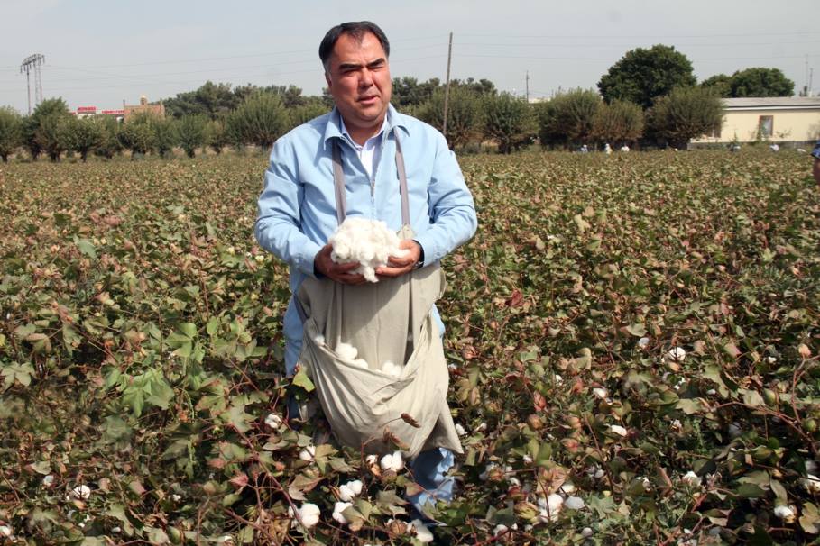 Раиси вилояти Суғд Раҷаббой Аҳмадзода дар ҷашни зодрӯзаш, рӯзи якшанбеи ҳафтаи сипаришуда ба саҳро баромада, 75 кило пахта ҷамъоарӣ намуд.