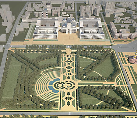 Бунёди маҷмааи парлумонӣ дар қисмати марказии Душанбе ба нақша гирифта шуда, аз биноҳои чорошёна иборат хоҳад буд. Он дар ҷойи бинои собиқ мақомоти шаҳрдорӣ ва хонаҳои пештоқдор сохта мешавад.