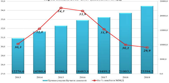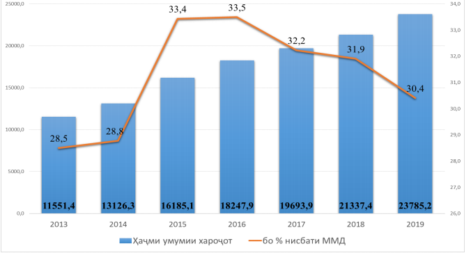 Ҳаҷми умумии қисмати хароҷоти Буҷети давлатии Тоҷикистон барои соли 2019 дар ҳаҷми наздики 23,8 млрд. сомонӣ ба нақша гирифта шудааст, ки нисбат ба хароҷоти бучети соли равон қариб 2,5 млрд. сомонӣ зиёдтар аст.