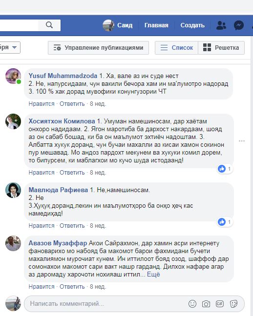 Вакилон дар ҳоле аз огоҳии мардум ва бархӯрди интихобакунандаҳо бо ифтихор суҳбат мекунанд, ки як назарпурсии мо тариқи суҳбати рӯ ба рӯ ва ҳам бо истифода аз шабакаи иҷтимоии “Фейсбук” аён намуд, ки на ҳамаи шаҳрвандон вакилони худро мешиносанд ва ё аз мулоқотҳояшон баҳраваранд, чӣ расад ба баррасии масоили муҳим бо онҳо.