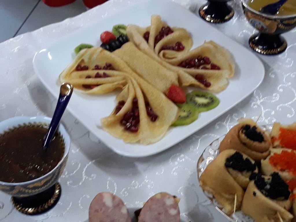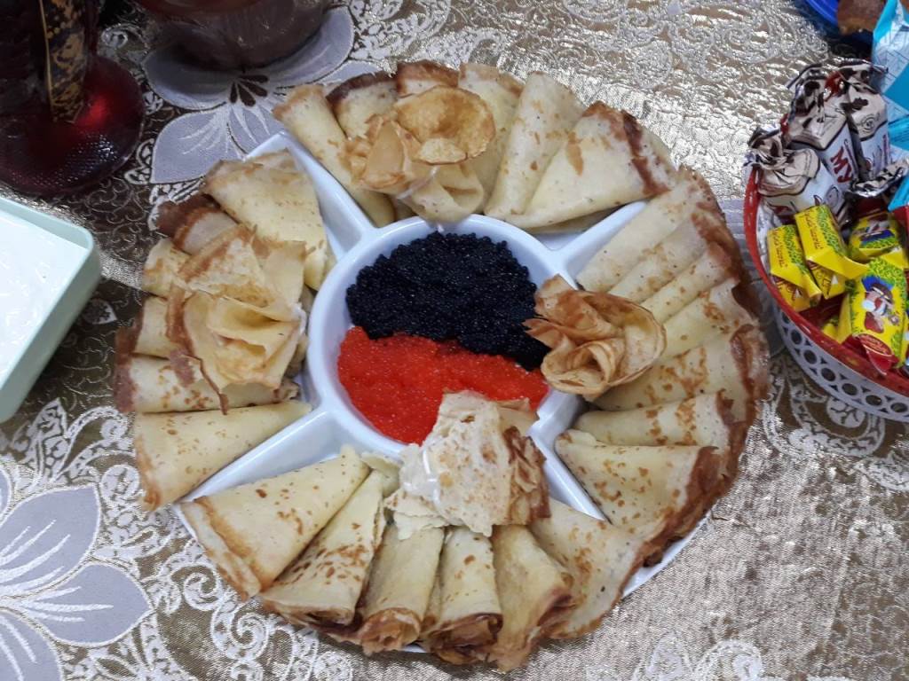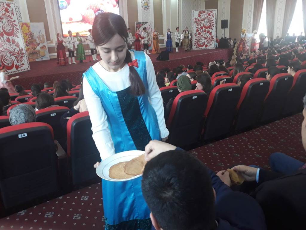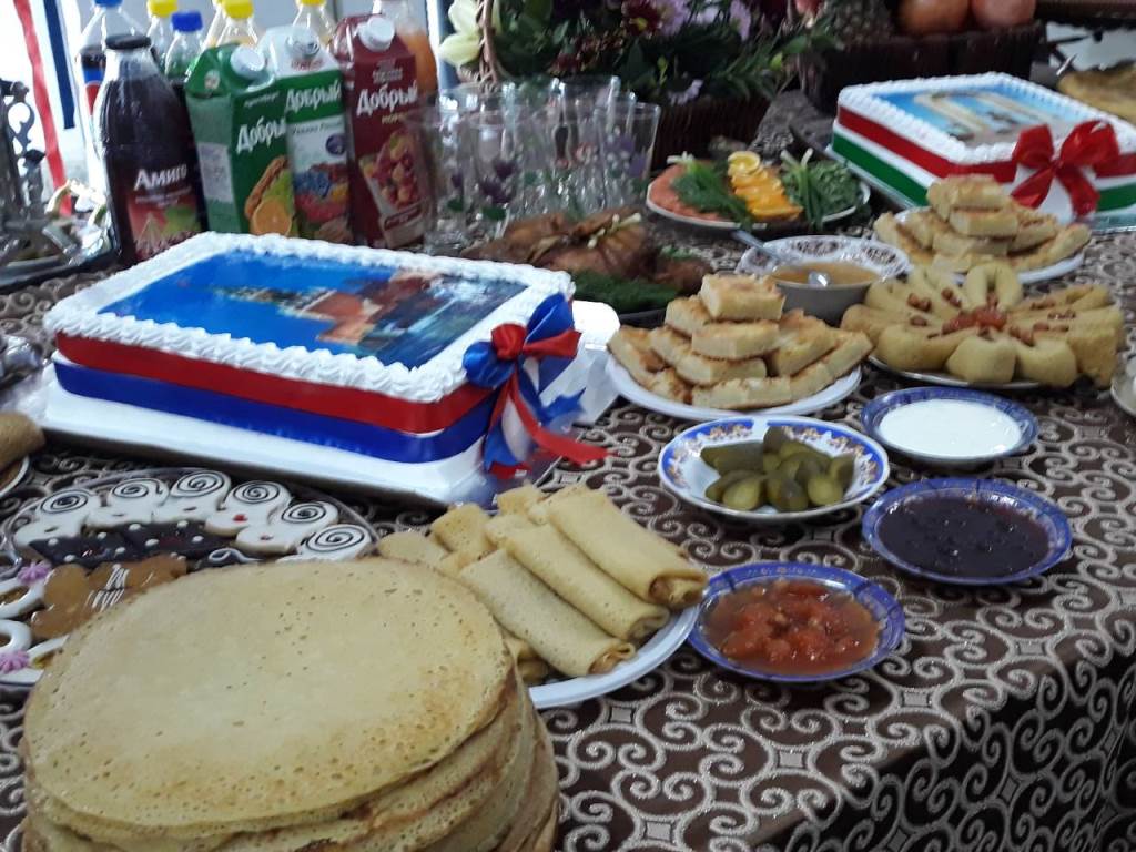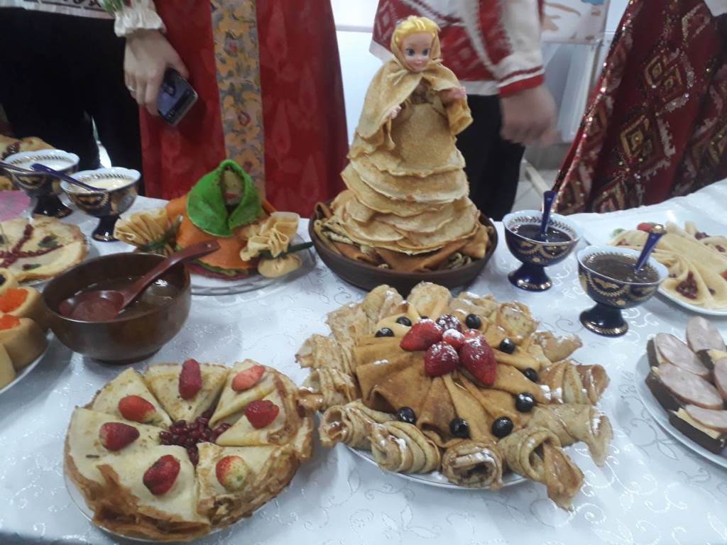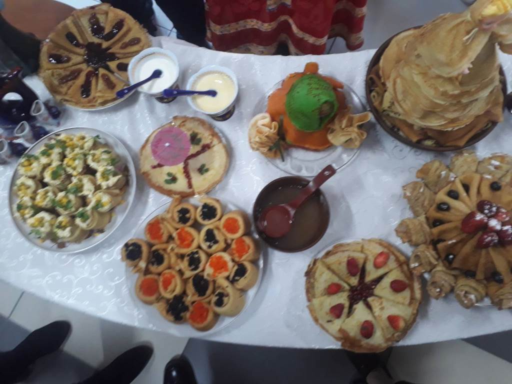 Ҳар кадоме аз факултаҳо мизи алоҳида ороста, дар онҳо ғизои асосии ин ид – чалпак (блини) мақоми хосса дошт. Ҳамчунин ба ин муносибат аз ҷониби донишҷӯён барномаи идона намоиш дода шуд.