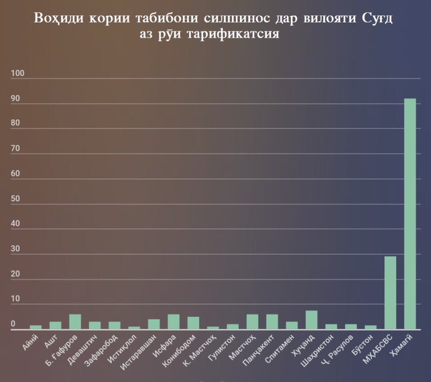 – Дар Маркази мубориза зидди бемории сил дар шаҳри Хуҷанд 7, 25 воҳиди корӣ барои табибони силшинос аз рӯи тарификатсия ҷудо карда шудааст. Аммо ҳоло дар марказ ҳамагӣ 5 нафар духтурони силшинос кор мекунанд.