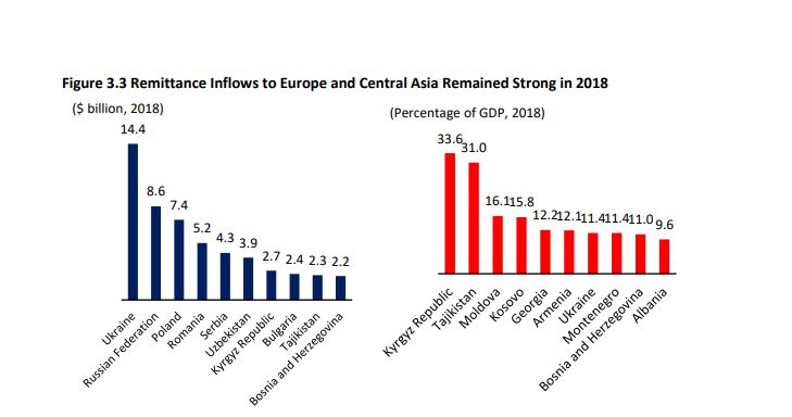 Дар ҳамин ҳол, тибқи маълумоти Бонки марказии Русия, соли 2018 шахсони воқеӣ аз Русия ба Тоҷикистон беш аз 2,5 млрд. доллар маблағ фиристодаанд, ки ба 34% аз ҳаҷми ММД-и ҷумҳурӣ дар соли гузашта баробар аст.