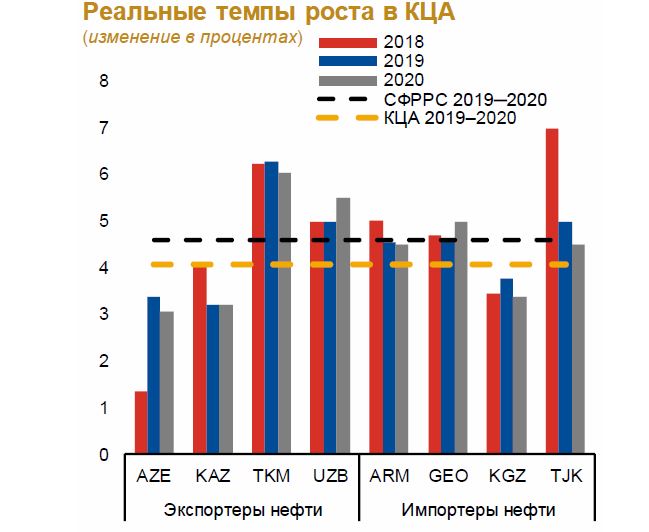 “Бо назардошти суръати пешбинишудаи рушди иқтисод дар солҳои 2019 ва 2020 дар сатҳи 4,1%, дурнамои рушди минтақаи Қавқоз ва Осиёи Марказӣ дар муқоиса бо суръати рушди соли гузашта дар сатҳи 4,2% қариб тағйир намеёбад”, – қайд мекунанд муаллифони гузориш.