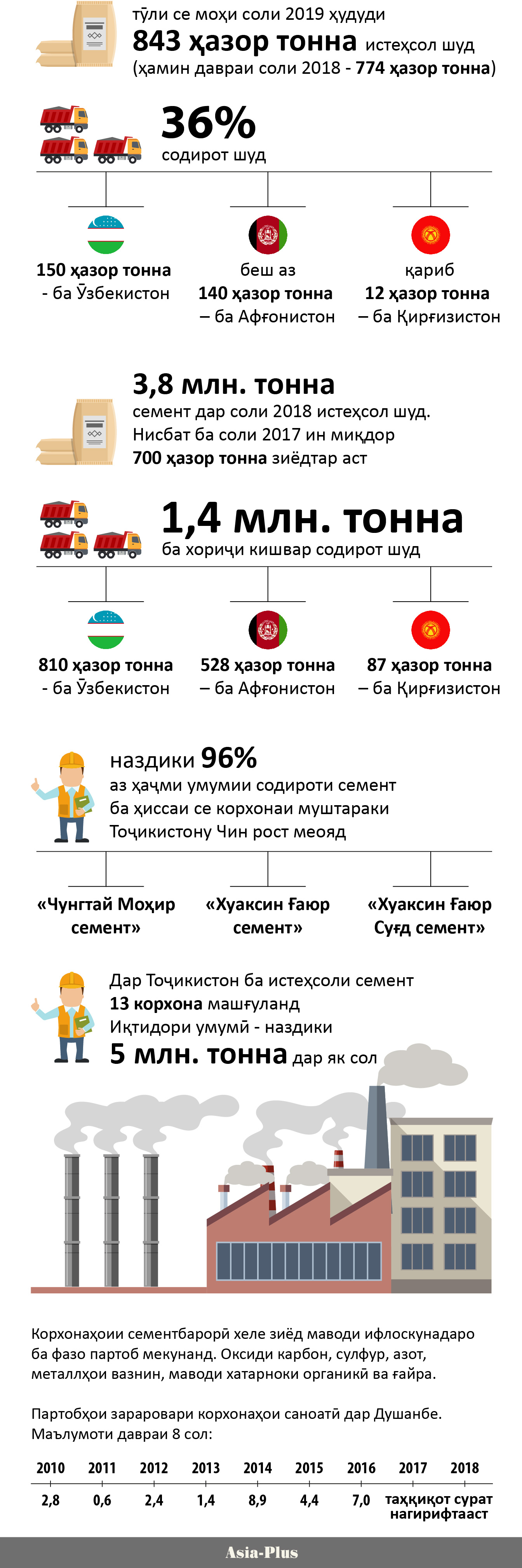 Сарфи назар аз ташвиши экологҳо, корхонаҳои сементбарории Тоҷикистон мунтазам ҳаҷми истеҳсолро меафзоянд.