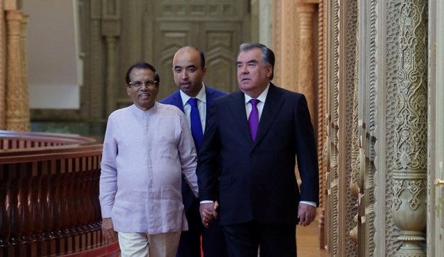 Президенти Тоҷикистон Эмомалӣ Раҳмон дар ҳошияи Ҳамоиши панҷуми Машварати ҳамкорӣ ва тадбирҳои боварӣ дар Осиё рӯзи 13 июн Президенти Ҷумҳурии Демократии Сотсиалистии Шри-Ланка Майтрипала Сирисенаро ба ҳузур пазируфт.