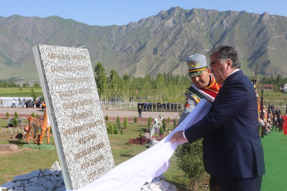 Дар маркази шаҳраки Ваҳдати ноҳияи Лахш Эмомалӣ Раҳмон дар вазъияти тантанавӣ Муҷассамаи аввалин асосгузори давлати тоҷикон Шоҳ Исмоили Сомонӣ ва Нишони давлатиро ифтитоҳ кард. Дар майдони марказии ноҳия дар баробари муҷассамаи шоҳ Исмоили Сомонӣ мардуми ноҳияи Лахш тавассути ҳашар Нишони давлатиро бо баландии 14 метр сохта мавриди баҳрабардорӣ омода карданд.