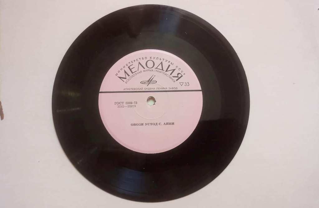 Мусиқачӣ якчанд пластинка, аз ҷумла сабти овози Айниро аз як зане харидааст, ки барояш ин пластнкаҳо ҳеҷ арзише надоштанд. “Пластинка 20 сомонӣ нарх дошт”, – мегӯяд номбурда.