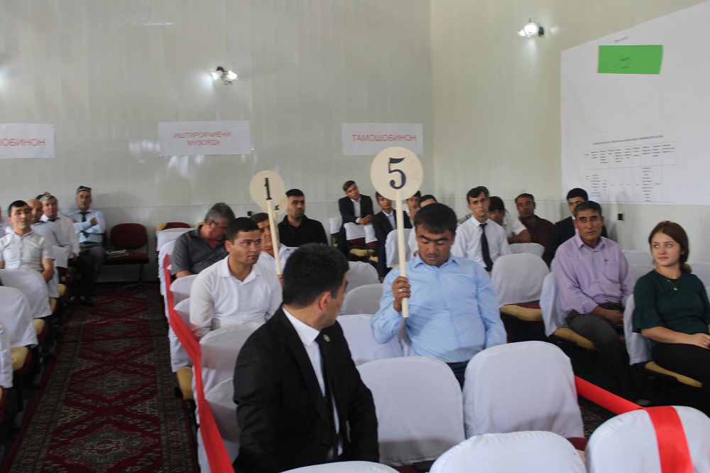 “То ба имрӯз ин заминҳо муайян карда шуда, харитаи ҷойгиршавии онҳо тартиб дода шудааст. Мо дар музоядаи имрӯза ҳуқуқи истифодаи муваққатии 12 га заминҳои корами обии фонди захиравиро, ки дар ҷамоати “Ситораи Сурх” ҷойгиранд, ба музояда баровардем. Нархи аввалияи ҳуқуқи истифодаи мувақатии онро мутахассисон ҳисоб карда бароварданд. Аммо ба хотири он ки бори аввал аст, ки ҳуқуқи истифодаи замин ба музояда бароварда мешавад ва мардум аз ин усул ё таҷриба бохабар нестанд, мо нархи аввалияи онро 50% кам кардем. Натиҷаи музоядаи имрӯза нишон дод, ки талабгор ба замин зиёдаст ва дар оянда бо нархҳои асле, ки мутахассисон ҳисоб карда баромаданд, ҳуқуқи истифодаи мувақатии ин заминҳоро ба музояда мебарорем. Бояд гӯям, ки то охири сол мо боз мувофиқи нақша як музоядаи дигар ташкил карда, ҳуқуқи истифодаи муваққатии ҳудуди аз 25 то 50 га заминҳои фонди захиравиро ба иҷора пешниҳод мекунем. Имрӯз аз натиҷаи ин музояда, ки панҷ лот барои иҷора гузошта шуда буд, ба буҷаи ноҳия 16 ҳазор сомонӣ ворид хоҳад шуд”- қайд кард Аскарбек Набизода.