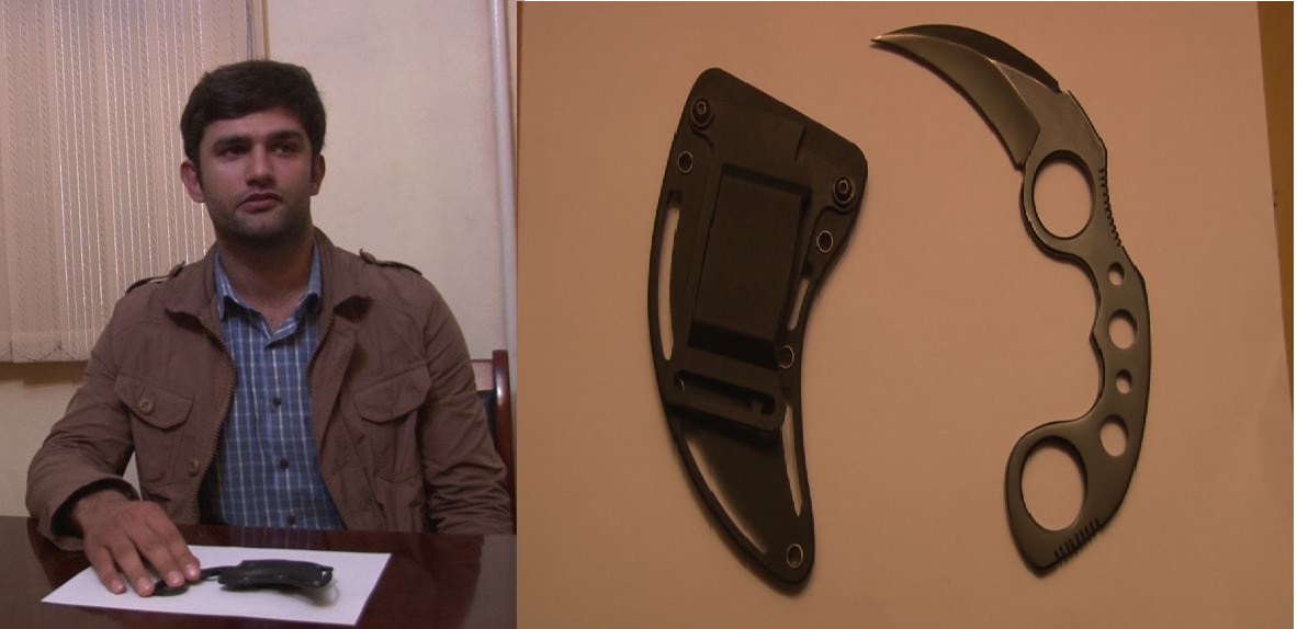 Нуриддинзода Фарҳоди Файзиддин, соли таваллудаш 29.02.1992, сокини ш. Душанбе, кӯчаи Фирдавсӣ, 1 адад корд.