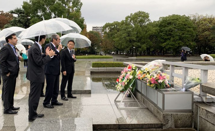 Раиси Маҷлиси миллӣ 24-уми октябр ба нишони поси хотири қурбониён дар «Боғи ёдбуди сулҳи Ҳирошима» гулчанбар гузошта, аз Осорхонаи ёдгории сулҳи Ҳирошима ҷиҳати шиносоӣ бо нигораҳо ва муҷассамаҳои гиромидошти хотираи қурбониёни фоҷеаи соли 1945 боздид кард.