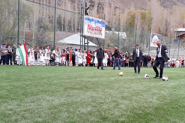 Дар маросими ифтитоҳи майдончаи варзишӣ раиси Вилояти Мухтори Кӯҳистони Бадахшон Ёдгор Файзов ва ноиби президенти Федератсияи футболи Тоҷикистон Алишер Урунов ширкат варзиданд.