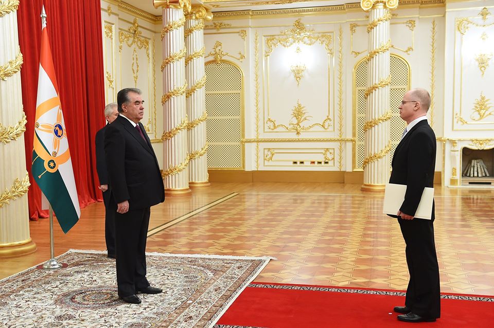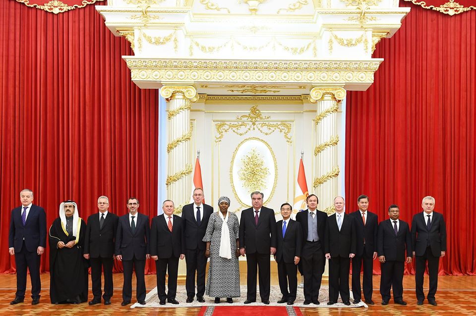 Эътимодномаҳои худро сафирони фавқулодда ва мухтори Ҷумҳурии Федеративии Олмон Андреас Протманн, Япония Такаюки Мияшита, Украина Василий Серватюк, Шоҳигарии Нидерландия Андре Карстенс, Ҷумҳурии Португалия Паулу Жоао Лопеш ду Регу Визеу Пинейр, Ҷумҳурии Литва Гинтаутас Васиулис, Ҷумҳурии Кипр Андреас Зинонос, Шоҳигарии Таиланд Русс Ҷаличандра, Шоҳигарии Баҳрайн Муҳаммад Иброҳим Муҳаммад Абдулқодир, Ҷумҳурии Халқии Бангладеш Гузал Азам Саркор ва Ҷумҳурии Нигер хонум Салоу Адама Газибо ба раисҷумҳури Тоҷикистон бо паёму дуруд аз роҳбарияти кишварҳои хеш супориданд.
