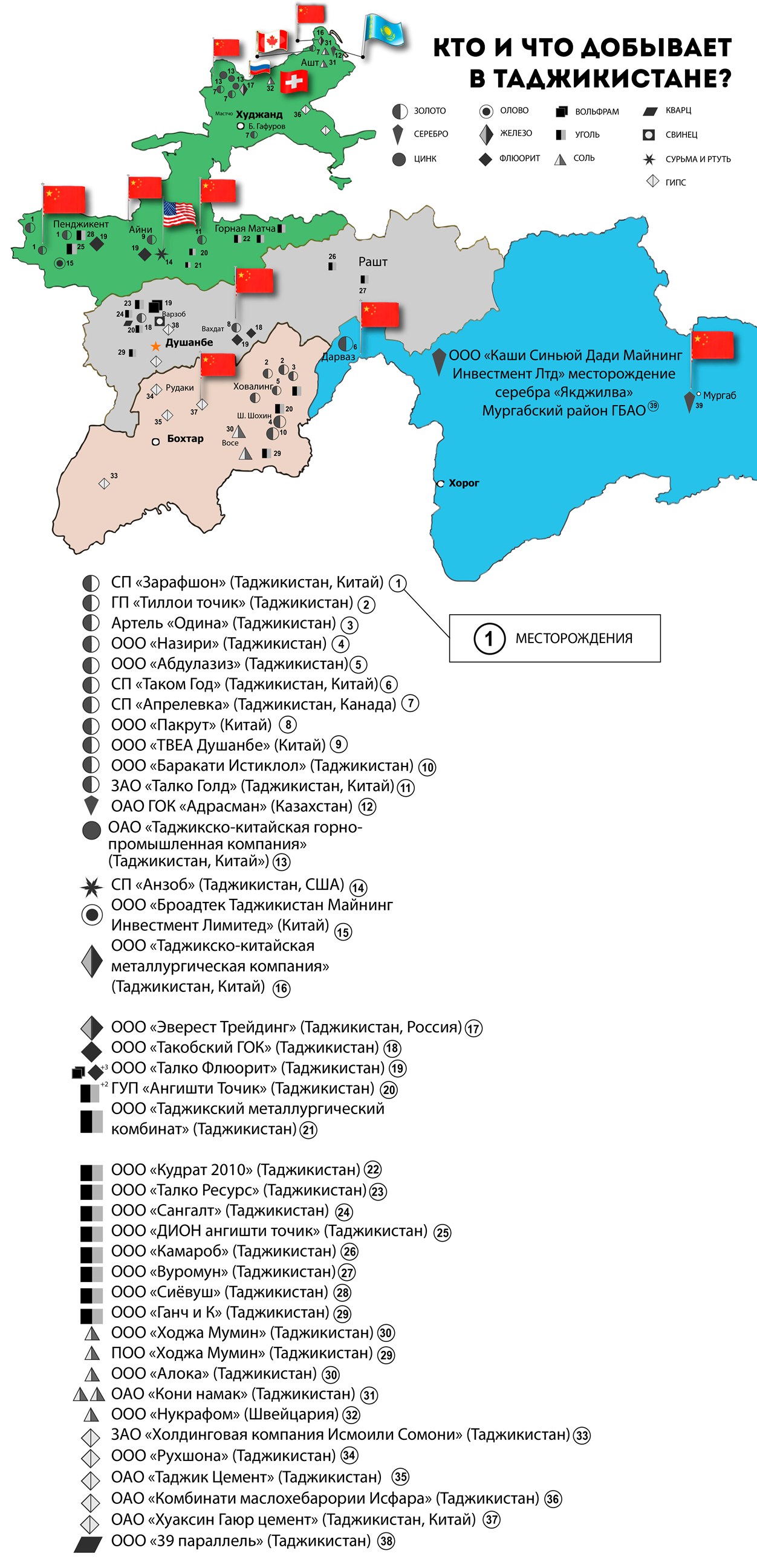 Мувофиқи созиши ҳосилшуда бо ҳукумати Тоҷикистон, ширкат ба истихроҷи металлҳои гаронбаҳо аз ин конҳо то ҷуброни воситаҳои харҷкардааш барои сохтмони Маркази барқу гармидиҳии Душанбе-2 ҳуқуқ дорад.