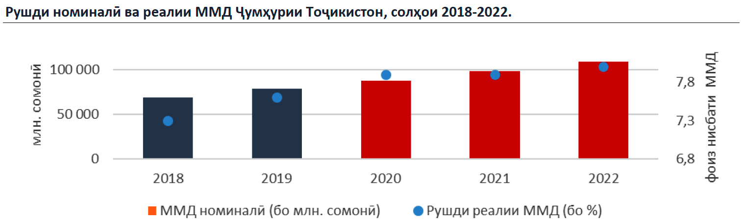 “Афзоиши реалии Маҷмӯи маҳсулоти дохилӣ (ММД) дар соли 2020 – 7,8%, соли 2021 – 7,9% ва дар соли 2022 – 8,0% -ро ташкил хоҳад дод”, – хабар медиҳад Вазорати молияи ҷумҳурӣ.
