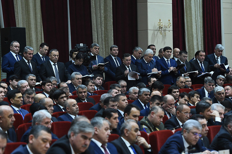 Дар рафти маҷлис оид ба фаъолияти соҳаҳо, волоияти қонун, таъмини амнияти давлату миллат, тартиботи ҷамъиятӣ, пешгирии ҷиноятҳо ва дигар қонунвайронкуниҳо ҳисоботи прокурори генералии ҶТ Юсуф Раҳмон, вазири корҳои дохилӣ Рамазон Раҳимзода ва раиси Кумитаи давлатии амнияти миллӣ Саймумин Ятимов шунида шуд.