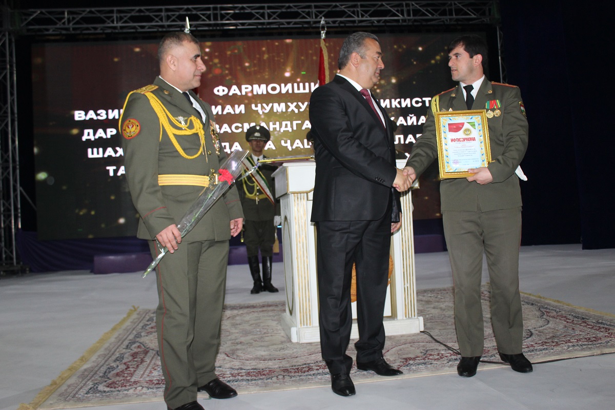 Ӯ дар ҷамъбасти суханронӣ аскарону афсарони Қувваҳои мусаллаҳ, сохторҳои ҳифзи ҳуқуқ, нафақахӯрони соҳа ва тамоми мардуми вилоятро бо ин ҷашн таҳният гуфта, таъкид кард: “Осудагии падару модарон, осмони софу беғубори Ватан заҳмати шабонарӯзии шумост. Умед дорам, ки тамоми қувва, донишу малакаи худро баҳри содиқона хизмат кардан ба Ватану миллат ва тамоми тоҷикистониён сарф хоҳед кард”.