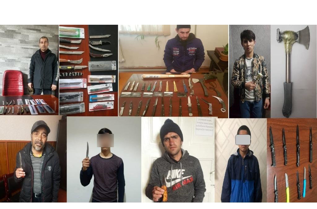 Аз онҳо дар умум 70 силоҳи сард, аз ҷумла, 67 корд, 2 табар ва 1 чӯбдаст (бита) дарёфту мусодира карда шуд.