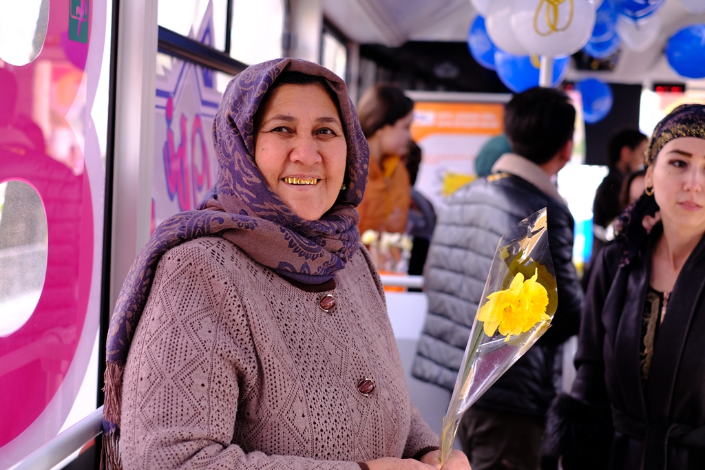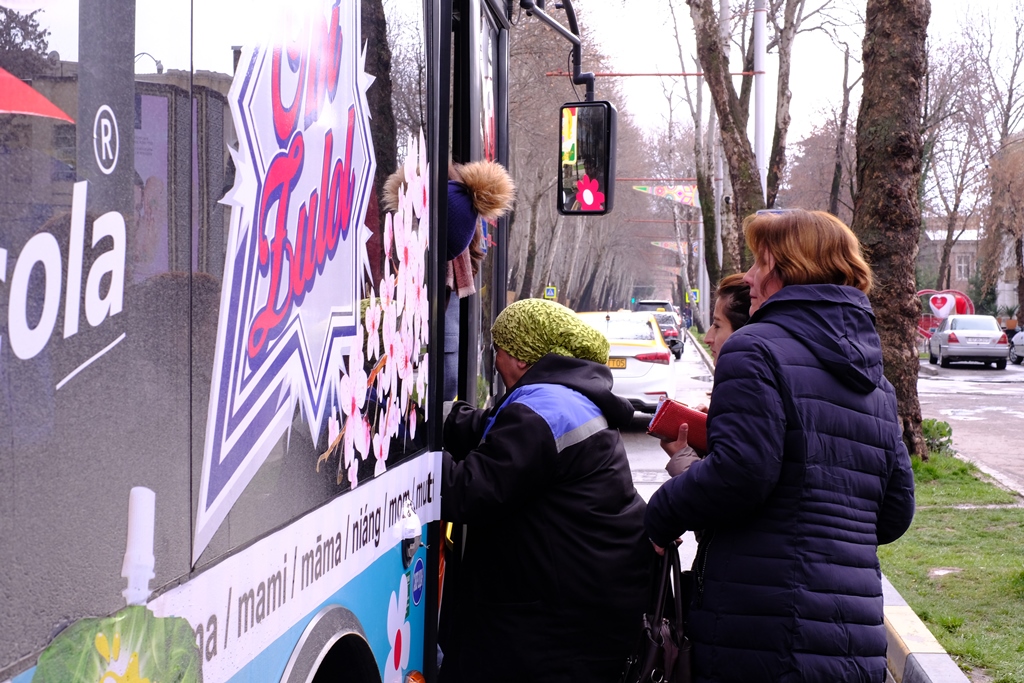 Дар доираи иқдом автобуси идона зинатёфта тариқи хатсайри №3 дар пойтахт равуо карда, мусофирзанонро бепул ба ҷойи дилхоҳашон мерасонд. Ғайр аз ин, ба бонувон гулу туҳфаҳо тақдим карда шуданд.