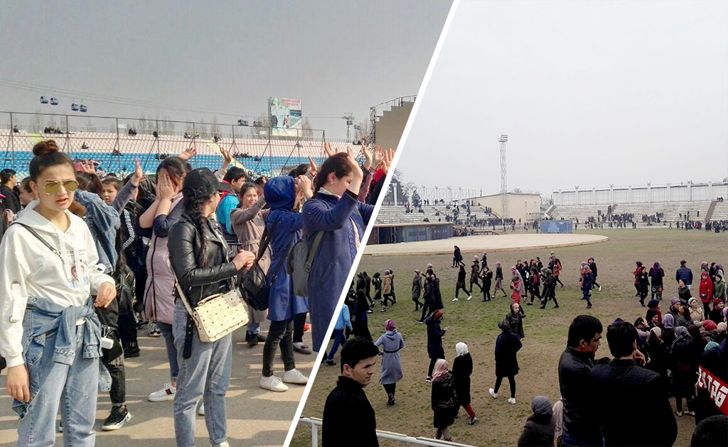Дар шаҳрҳои Хуҷанд ва Бохтар ҳазорон нафар хонандагони муассисаҳои таҳсилоти миёнаи умумӣ ва донишҷӯёни макотиби олӣ ба “маршировка”-и наврӯзӣ сафарбар шудаанд. Ин дар ҳолест, ки қаблан масъулини якчанд мақомоти давлатӣ эълом доштанд, барои пешгирии сирояти коронавирус чорабиниҳои оммавӣ қатъ карда мешаванд.