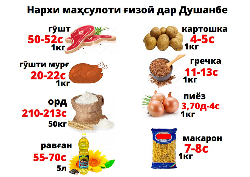 Ҳамин тавр, нархи 1 кило картошка аз 3,80 сомонӣ то 5 сомонӣ ва нархи ҳамин миқдор пиёз аз 2,50 сомонӣ то 4 сомонӣ боло рафт.
