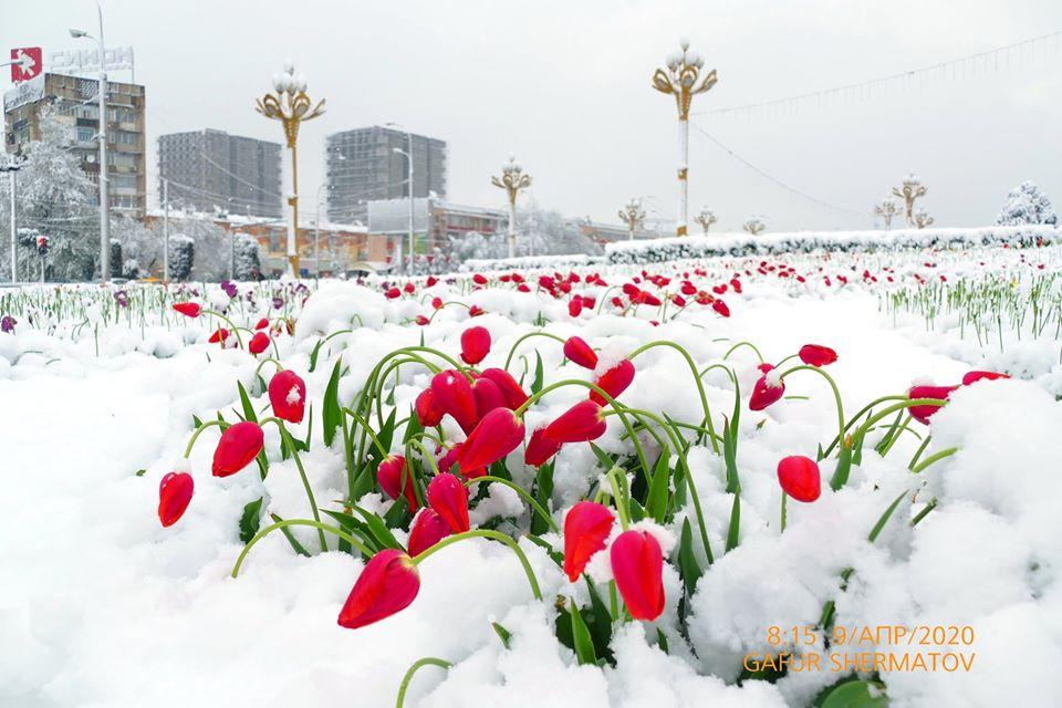 Шаби гузашта дар шаҳри Душанбе барфи зиёд борида, дар баъзе нуқтаҳои шаҳр баландии қабати он 18-20 сантиметрро ташкил дод.