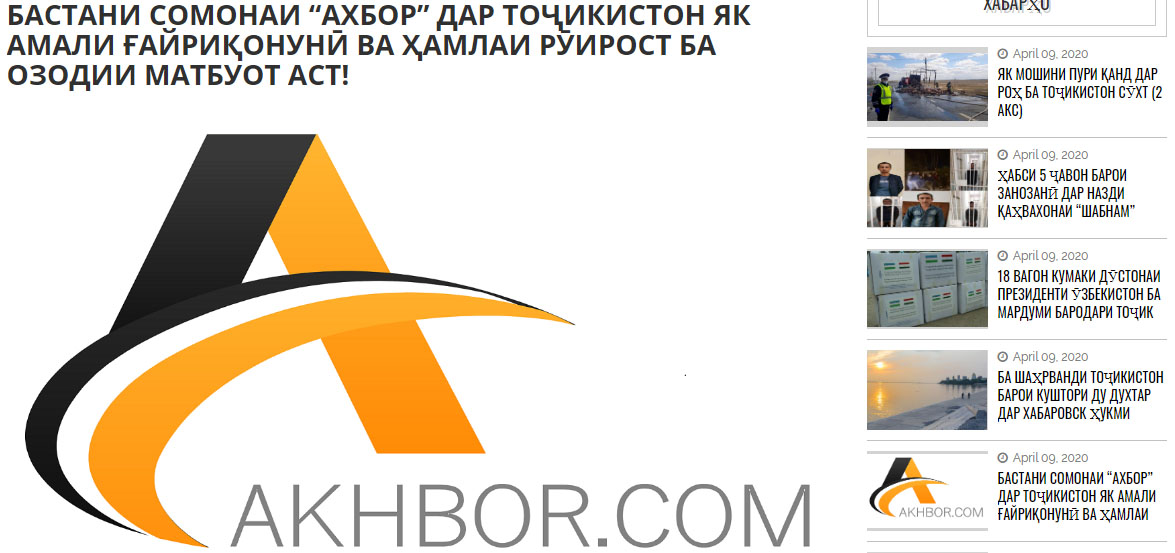 Дар асоси ҳалномаи Суди Олии Тоҷикистон сомонаҳои интернетии www.akhbor.com ва nahzat.ru, ки ба ташкилотҳои экстремистиву террористӣ хизмат мекунанд, дар қаламрави кишвар баста шуданд, хабар додааст бахши иттилооти Суди Олӣ. Аммо сардабири сомонаи “Ахбор” Мирзои Салимпур мегӯяд, бастани он дар Тоҷикистон як амали ғайриқонунӣ ва ҳамлаи рӯирост ба озодии матбуот аст.