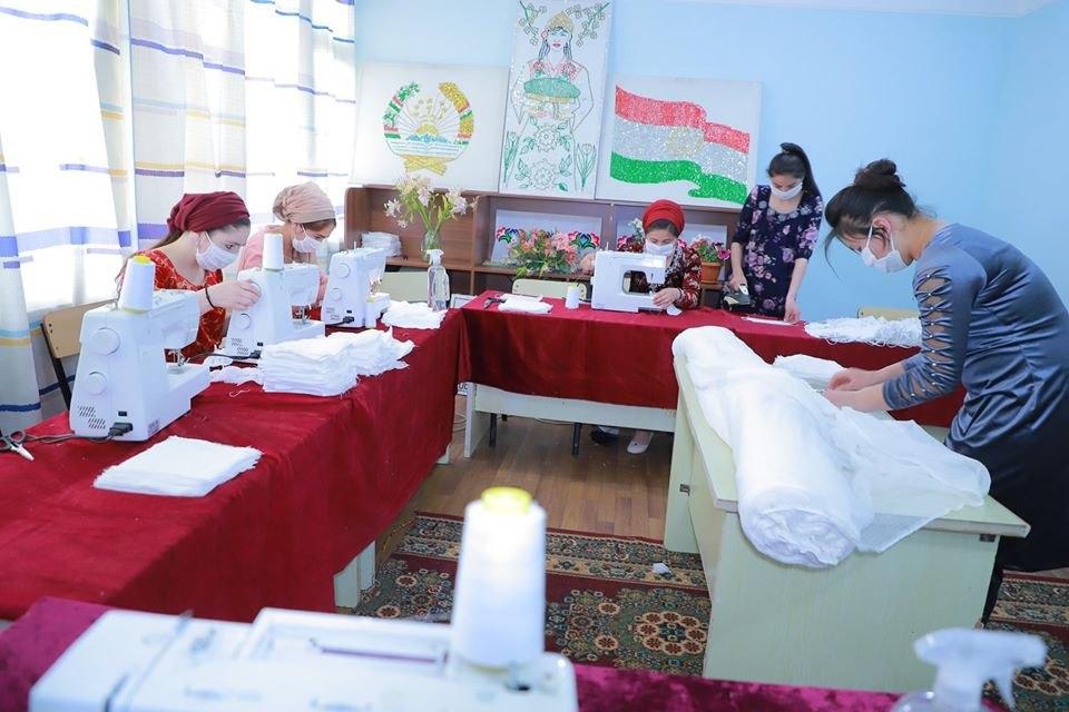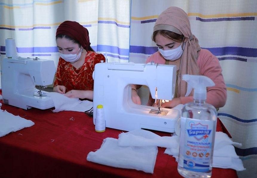Ниқобҳои тиббиро духтароне, ки дар хобгоҳ зиндагӣ мекунанд, дар вақтҳои фориғ аз таҳсил бо назардошти меъёрҳои зарурӣ таҳти роҳбарии мутахассисон медӯзанд.
